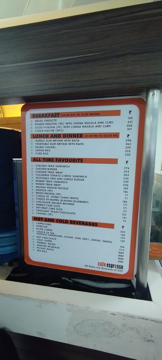 Welcome to Cafe Espresso, a delightful spot nestled in South West Delhi, specifically at IGI Airport's Terminal 2. This cozy eatery offers a charming escape for travelers seeking quick yet satisfying meals before their journey.